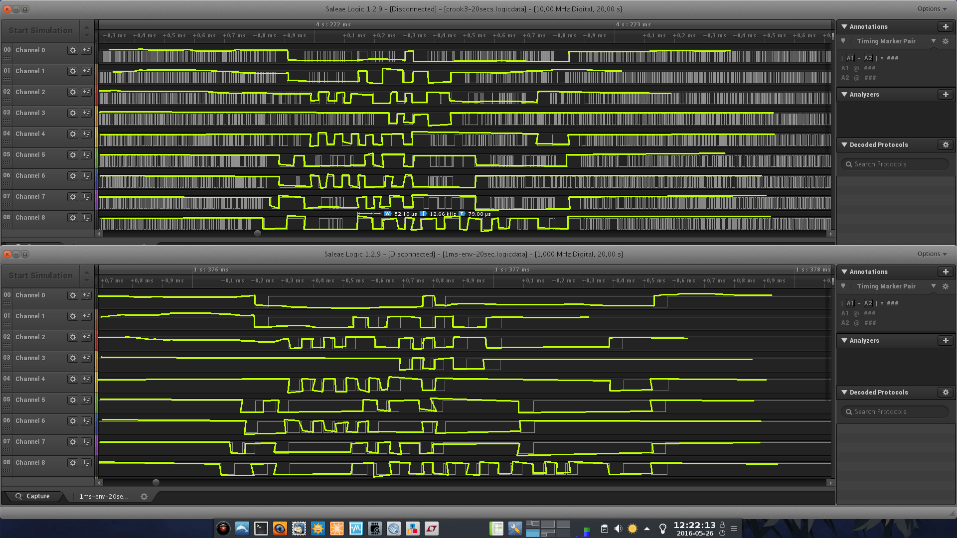 At this point, Jakub proposed a different approach: to use a logic analyzer (saleae, 16 channels) to dump the entire tape and use a software to decode the saved signals and extract the data, according to what is described in this document.